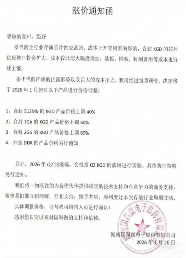 在此之前,国科微也已向客户下发涨价通知。