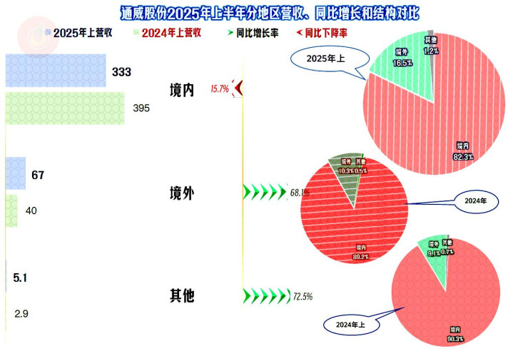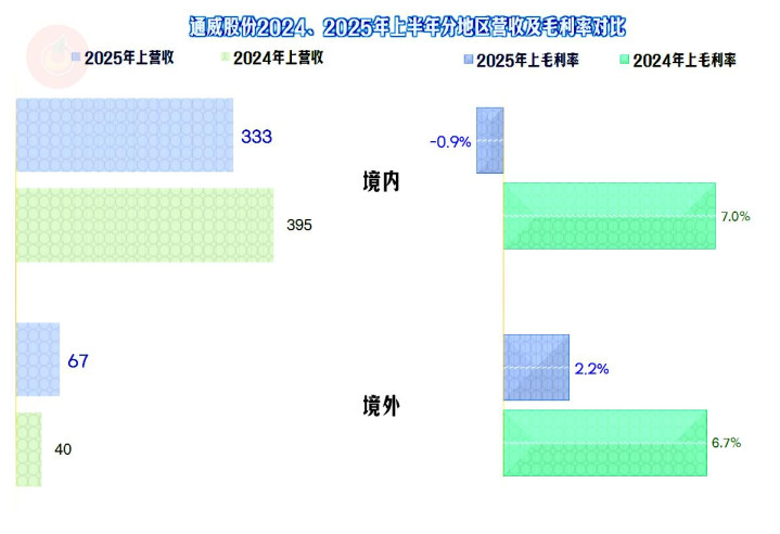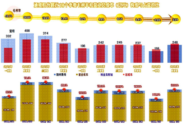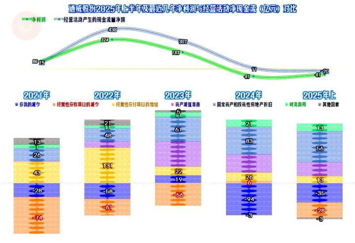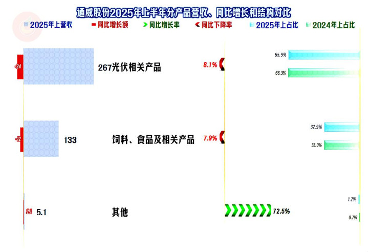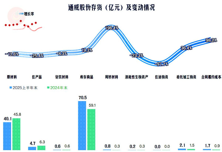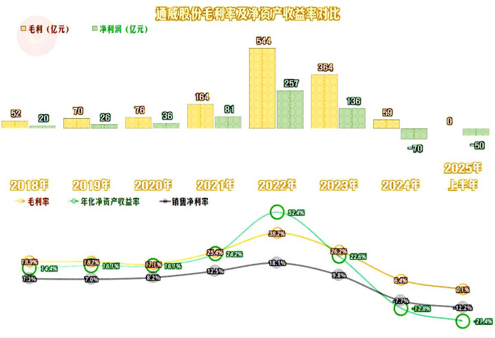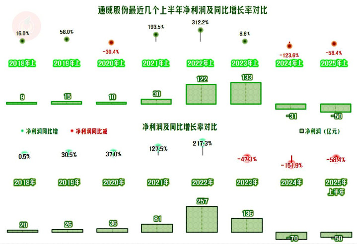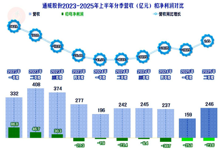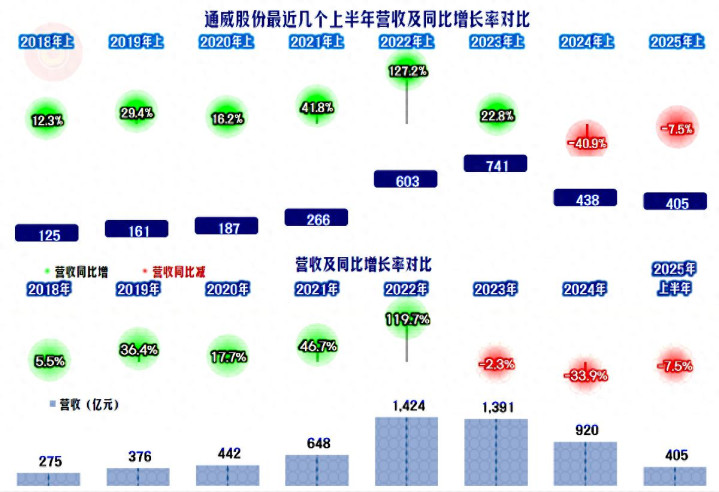 2025年上半年,通威股份的营收同比下跌了7.5%,算是稳住了2024年1/3幅度大跌的形势。