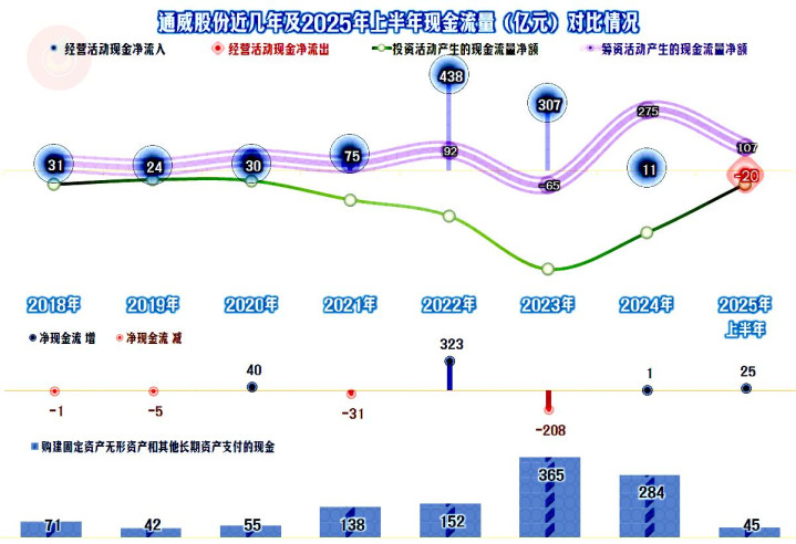 2025年上半年末的固定资产总算开始下降了,在建工程也有所下降,整个“经营性长期资产”合计下跌20多亿元,已经从原来的“扩张”模式,向稳中有降的模式转变。