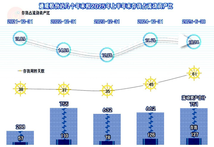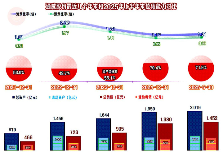 通威股份的资产负债率在2024年末超过七成,2025年上半年末继续小幅上升,长期偿债能力已经不是太好了。短期偿债能力稳中有升,相对来说,还算过得去的水平,如果能尽快摆脱亏损,那就更没问题了。
