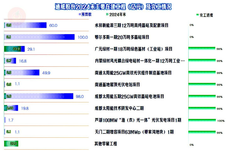 除了前两个预算金额合计160亿元的项目,还在筹备期之外,其他的项目基本上都接近完工,从这方面看,通威股份在项目方面的压力真还不太大,至于说筹备期的项目会不会马上就全面展开建设,关键还是看市场需求等方面,如果有必要,他们真有能力上。