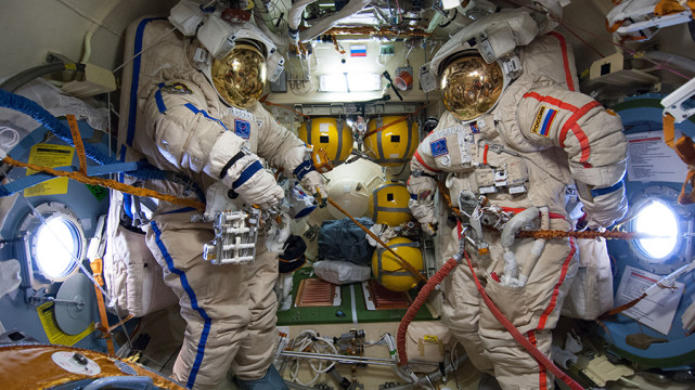 图注:国际空间站里的宇航服