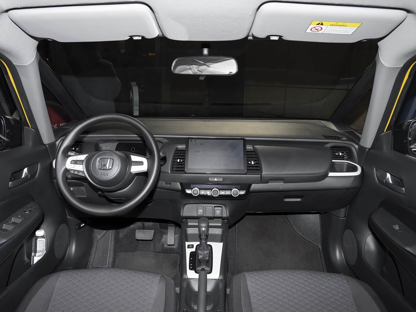 有前排四个气囊,有车身电子稳定系统,用LED大灯;10.1英寸的车机不支持车联网和OTA;方向盘是塑料材质,没有皮革覆盖;座椅是织物材料;空调是手动控制;音响系统只有两个扬声器;轮毂是钢制,使用185/60 R15规格的轮胎。