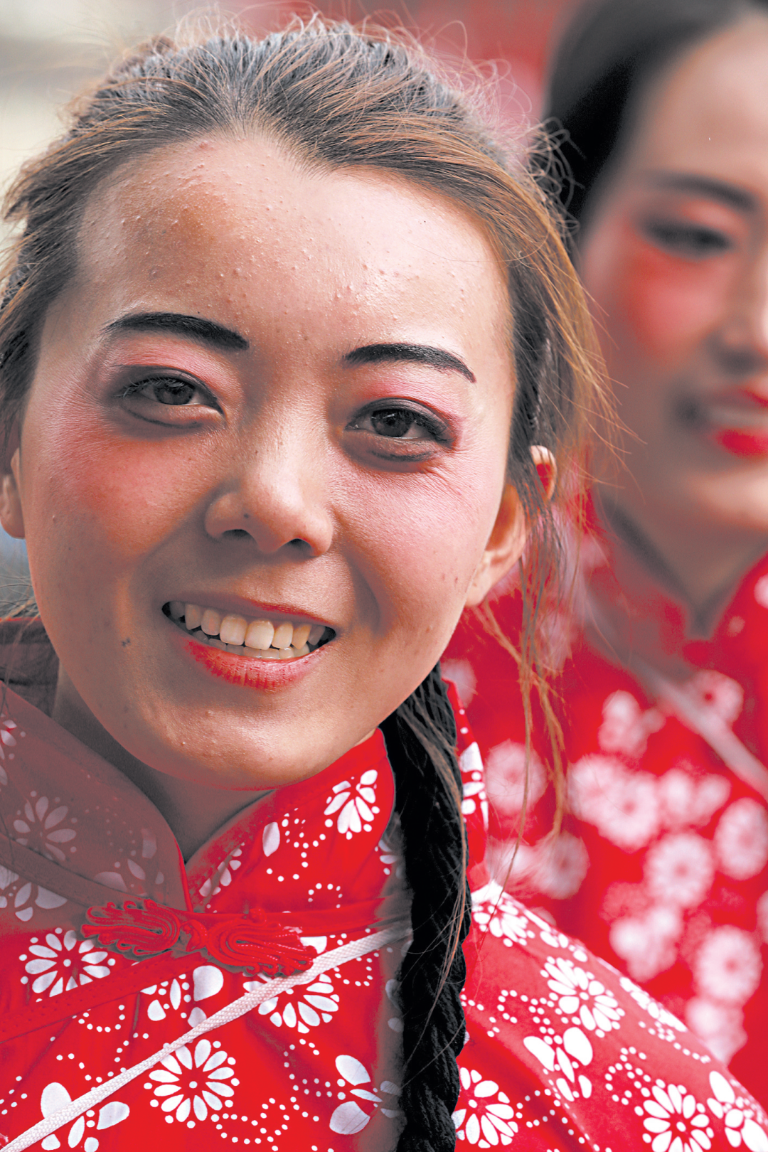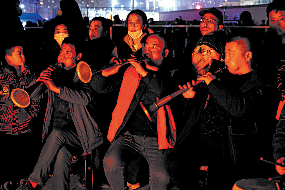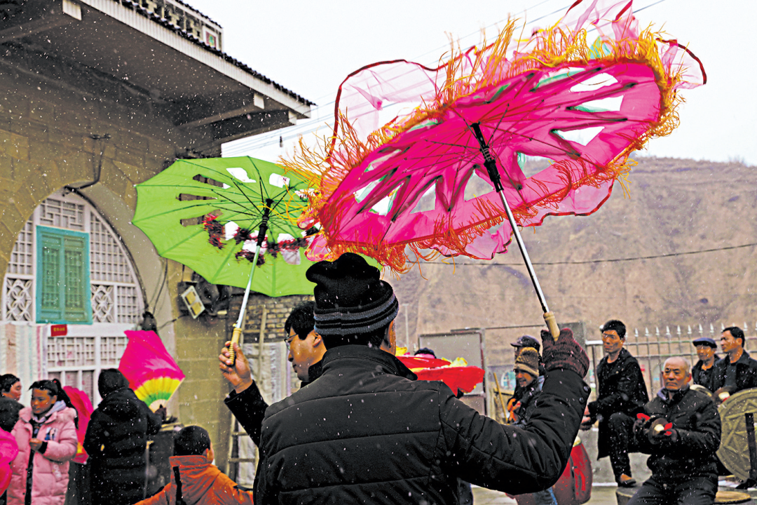 2019年2月,米脂县,秧歌队员。