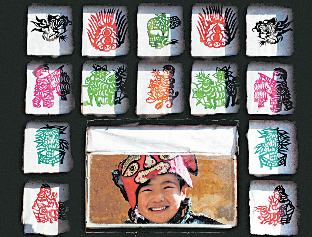 2012年2月,佳县,剪纸与陕北娃。