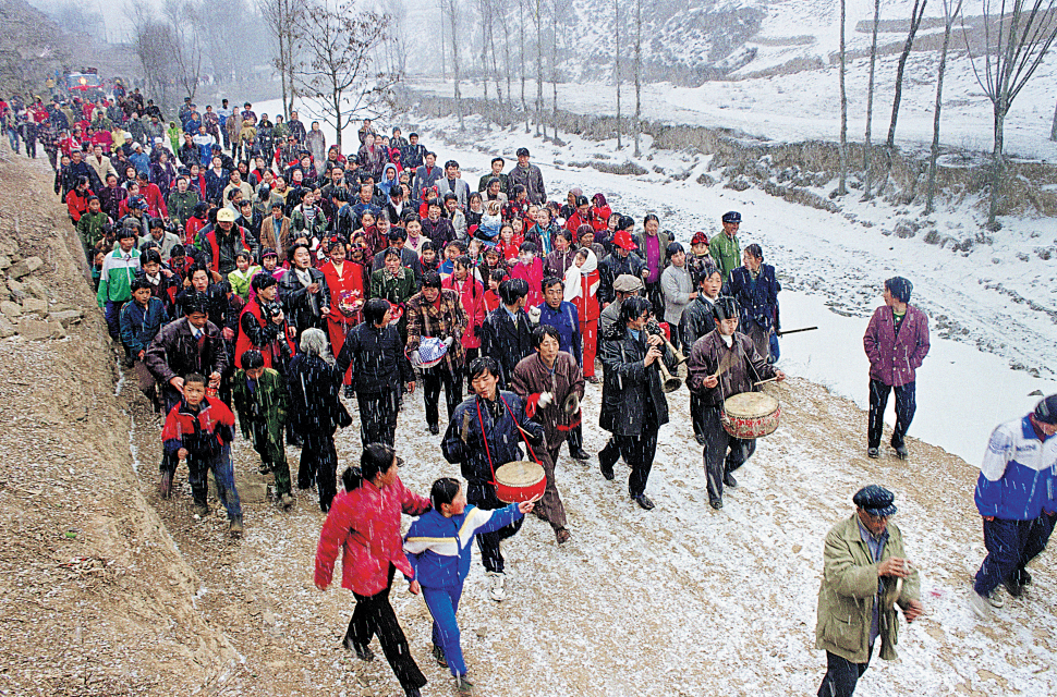 2000年2月,米脂县,瑞雪纷飞中的迎亲队伍。